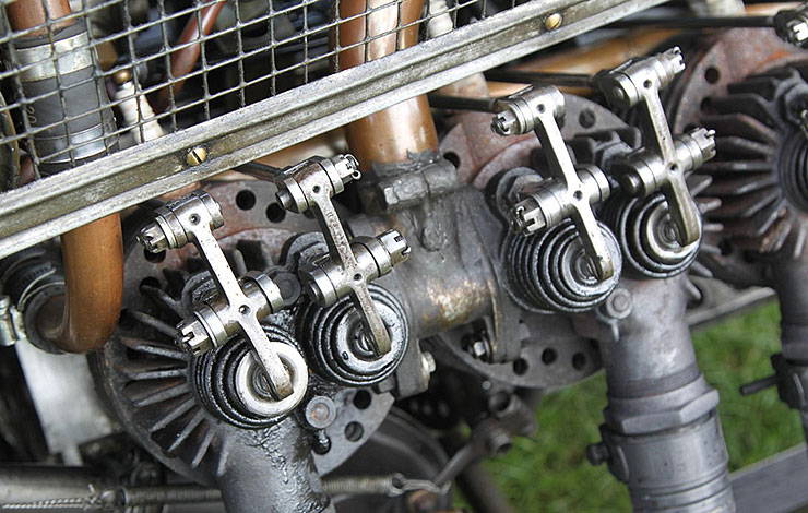 What many people find to be the most amazing part of the car is the air cooled V8 JAP engine. One of the main reasons why the engine is so lovely to look at is the fact that everything, you’d expect to be inside, is actually outside on display. The camshaft is completely exposed with its lever type followers and pushrods. The cam, the rockers and the timing gears are oiled with an oil can before running. –