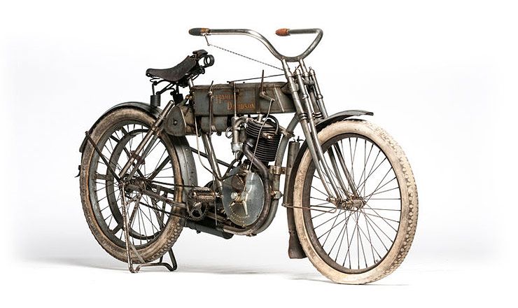 The three Davidson brothers and William Harley, weren’t bicycle racing champs or trained engineers like their competitors in the pioneering days of motorcycling. But they knew a good idea when they saw it, and set about building a motorcycle in 1901, which they finished in 1903, a single-cylinder of 7.08 cu-in. (116cc).In 1905, the budding factory built five machines. The engines were enlarged to 26.84 cu-in. (440cc), and produced about 4 HP. These first models are known as the ‘Strap Tank.’ The ‘Strap Tank’ itself is exactly what the name suggests: the oil and fuel tanks are held in place by two nickel plated steel bands and an iconic example of motorcycle history.