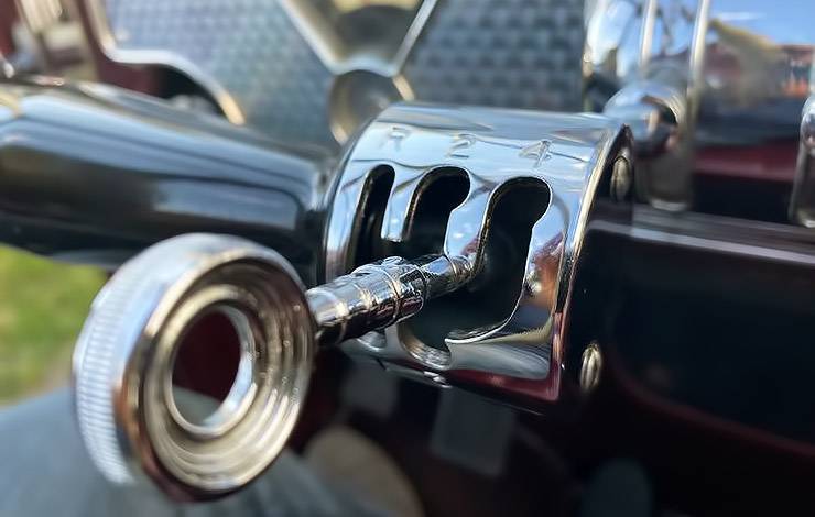 The elegant fingertip control lever was unique, being the most advanced system at the time. It was the same Ypsilanti transmission also used by Tucker cars after the war, and it was a step towards automatic transmission. You can see a demonstration of that gear shift design in the video at the end of this post (on the next page).