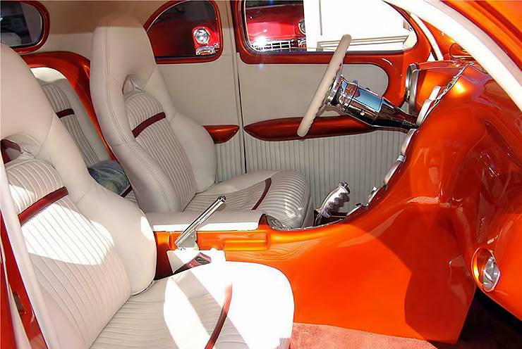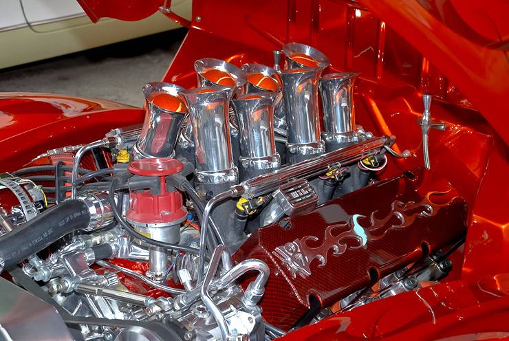 Bill has been in the industry building custom components and hot rods for over 30 years and his son has worked at the shop since a young age. The company manufacture high-quality components for a wide variety of cars.The custom chopped 1939 Ford with suicide doors you see here has been fitted with a 514 cubic inch engine that was supplied by Ford racing and is capable of producing 630 HP. The engine is fed from a one-off fuel injection system that utilizes bespoke velocity stacks. The engine is connected to a automatic transmission fitted with a 3500 RPM stall converter which delivers the power to the Dutchman quick change rear-end.