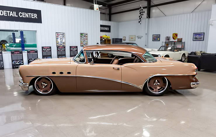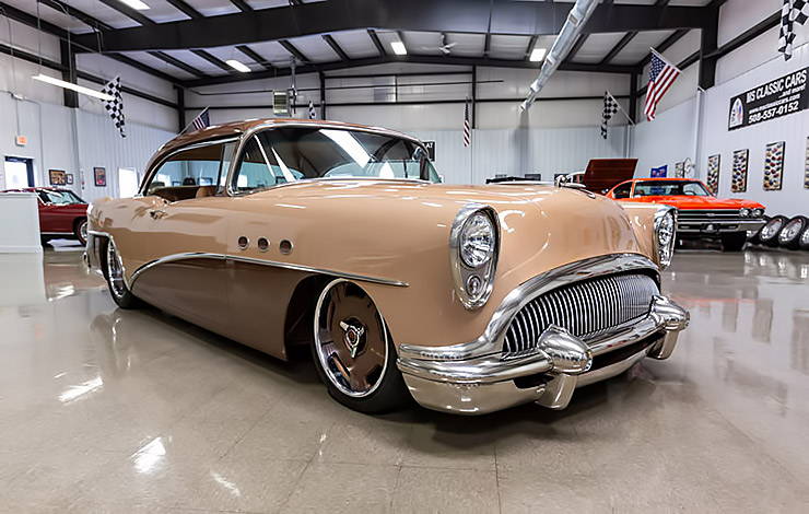 This 1954 Buick was the idea of Hal Wing and he approached Troy Trepanier to build the car for him. He had a wrecked G55 Benz, but wanted to get a classic made by Troy. Troy is no stranger to Buicks. In the 1990s, he built the “Hot Rod of the Year,” a 1950 Buick Sedanette.