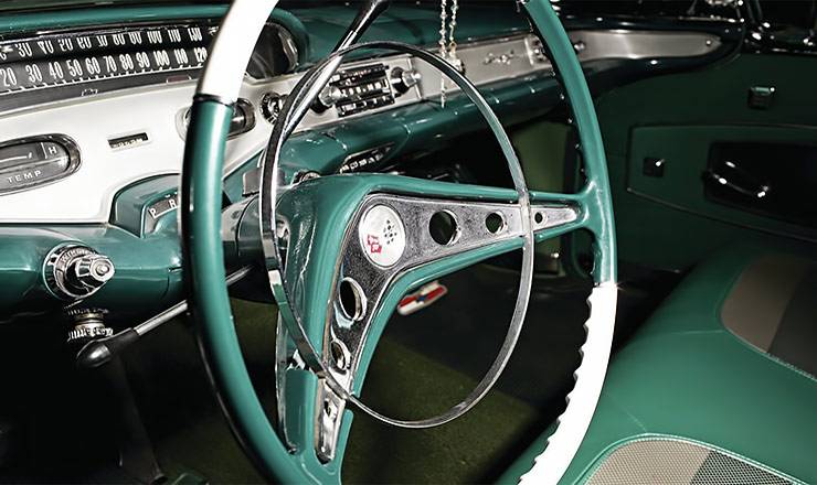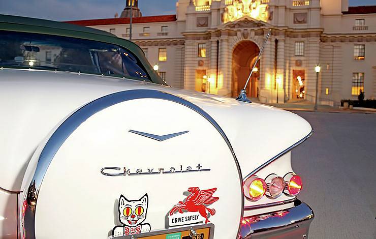 Raquel Macias caught the eye of David Novelo while she was sitting across the bar at a restaurant. Once he built up the courage (drank a few beers), he went up and talked to her and invited her to the Santa Maria car show the following weekend. She accepted and the two attended the car shows in David’s ’59.“Ever since then we’ve been together,” explains David. “She’s always liked classics cars and would always point out the ’58s at the shows.” He told her that one day he would propose to her with a pink slip to a ’58 instead of a ring.