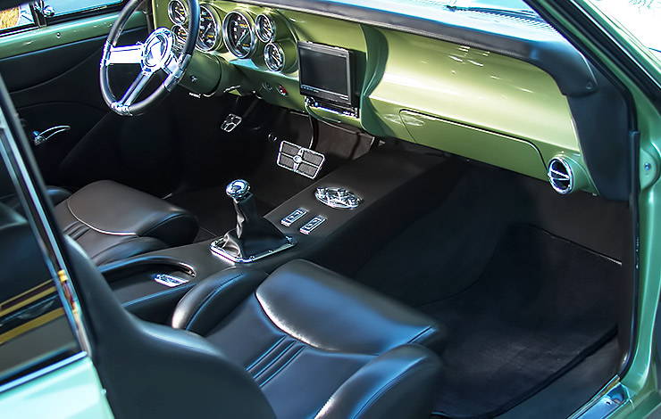 That impressive powertrain twists torque to a 4L60E transmission delivering the power to the road through a pair of Billet Specialities Throttle Pro Touring 20″ rear wheels wrapped in G-force TA tires that are sat within the tubbed out rear-end.