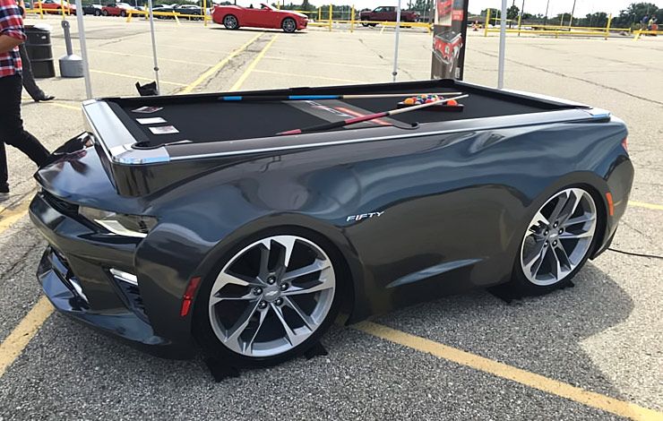 To celebrate the unveiling of the 50th anniversary Chevrolet Camaro, General Motors have commissioned and unveiled a pool table equivalent.