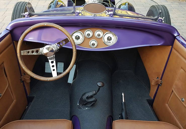 Radcliffe wanted his roadster to be painted with a purple color that closely resembled the school colors of his alma mater, Texas Christian University, so Jason sent him several paint samples by mail. They finally decided on a purple from BASF’s Onyx HD line.