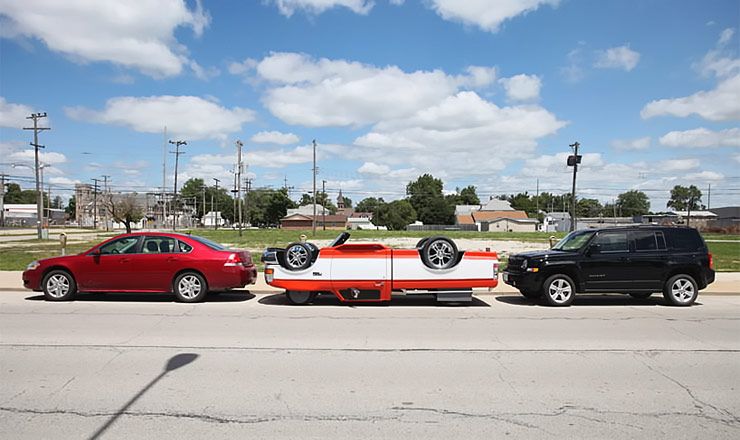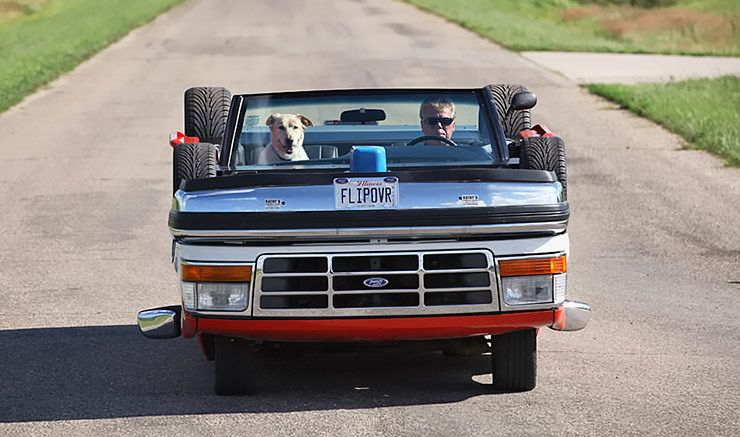With help from a couple of co-workers, this amazing vehicle only took 6 months to build. The wheels on the top actually spin with the aid of electric motors, and it’s street legal. It even has an interesting vanity plate… Rick Sullivan’s novelty license plate reads, “FLIPOVR.” Good thing that one was available, since “WTF TRUCK” is probably too long.