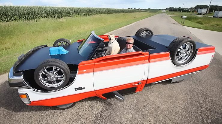 Whoa! A man has built an incredible upside down truck that looks like a flipped-over vehicle.