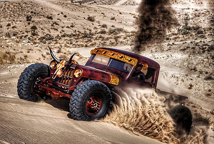 Built as a tribute to the Old West and the iconic guns of that era, what began as a 1948 Willys Pickup features an 8-inch cab stretch with a 3-inch chop. The engine bay has been stretched 11 inches to accommodate the 12-valve Cummins diesel transplanted into the Willys.