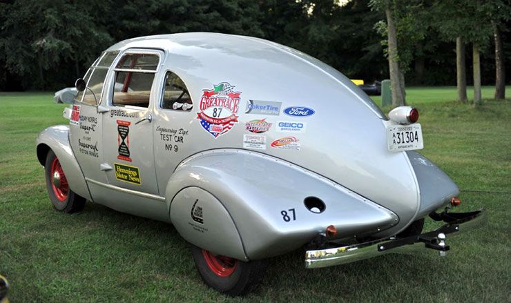 Six cars were built using unmodified 1932-33 Ford V-8 chassis and running gear and the highly advanced streamlined body design was constructed of steel and aluminum over a wood framework. Bug-eyed, bulbous and ungainly looking, these vehicles were not created in an attempt to break any land-speed records, that’s for sure.