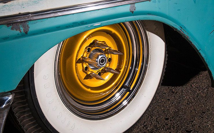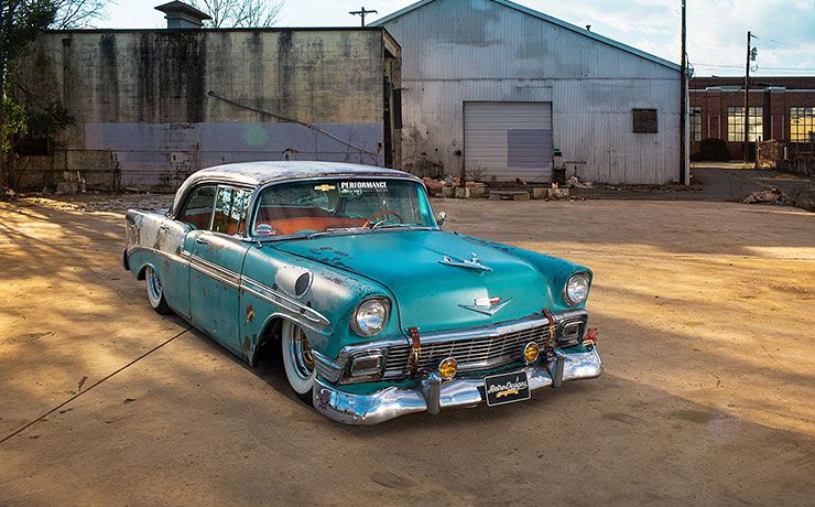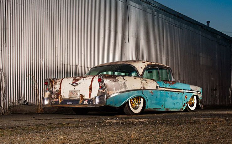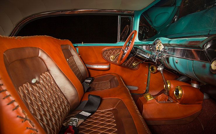 This tri-five Chevy marries a derelict exterior look with a leather-heavy, almost steampunk interior.