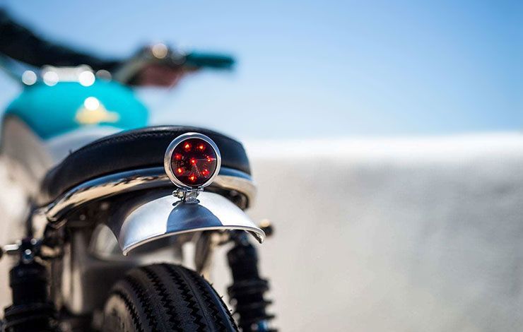 The Ceriani wheels were heavily shouldered, and shod with chunky Firestone Deluxe Champion tires. A compact Motogadget MST Vintage speedo seems like enough for this vintage bike, mounted on custom bars and with vintage-style switchgear from Kustom Tech to complete everything.