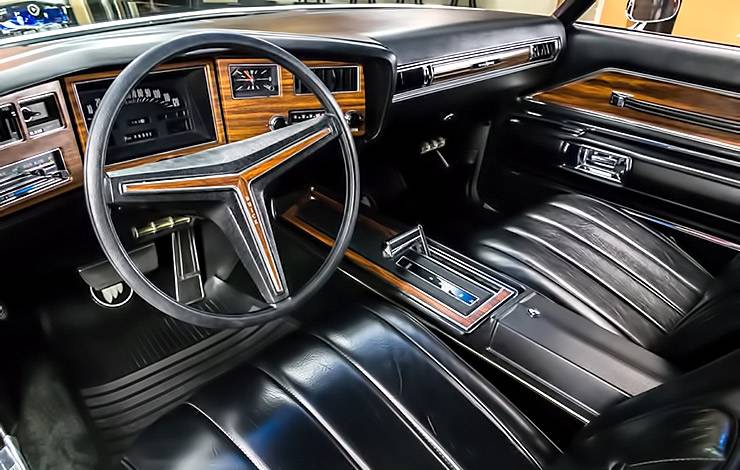 The standard engine for Riviera was now a 250 net horsepower 455 cubic-inch V8 and with 260 net horsepower Stage 1 455 available, which also included a Positive Traction differential and a chrome-plated air cleaner. The “Gran Sport” (GS) package was still available as a separate option package consisting of a just the ride-and-handling package and additional sound insulation along with special “Gran Sport” badging. Interiors were revised with instrument panels now shared with other big Buicks and wood grain trim replacing the engine-turned trim of 1971-72. Seating patterns for both bench and bucket seats were changed in both the standard and Custom trims and buckets were now 40/40 seating.