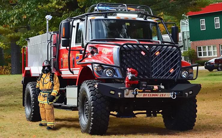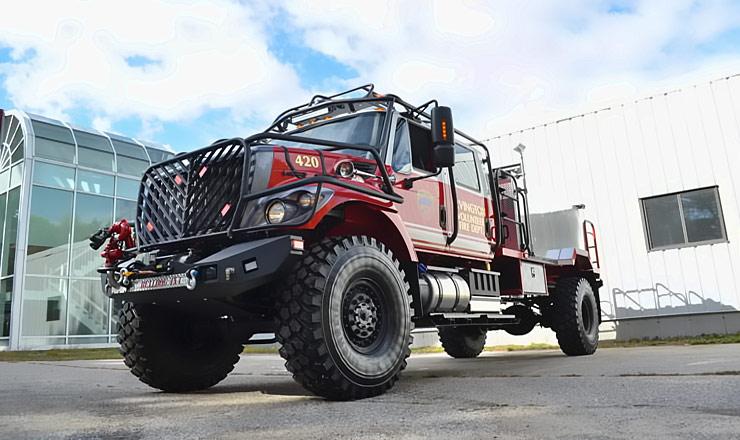 The Bulldog 4×4 Extreme Brush Truck is based on the indestructible International 7400 4X4 platform and equipped with 54″ military Hemmit tires. This tank-like truck from hell can go anywhere to put out fires with a vengeance.