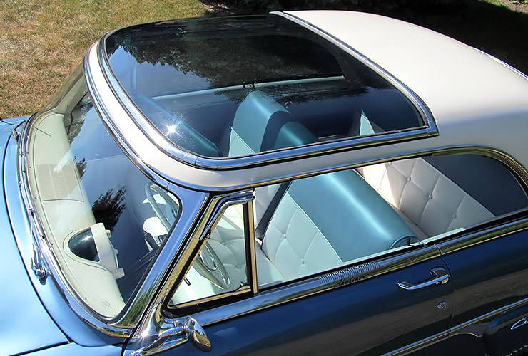In 1954, Ford added a new niche model to the top-of-the-line Crestline series: the “glass” top model Skyliner.