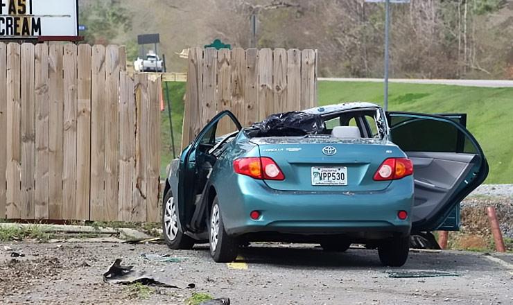 A stolen Toyota Tacoma hit spike strips, went airborne and landed on a car parked at the Nicky’s restaurant at Dixie Inn. Inside that car was Barbara Harlon. She escaped unhurt by climbing out a passenger door. “I felt around to see if I was hurt, and I could tell that I was okay. God was with me,” Barbara said.