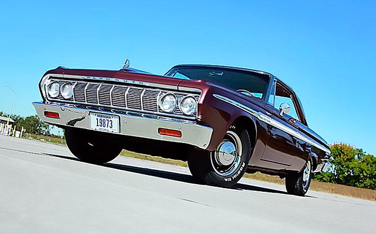 The 1964 model was basically a carryover from the previous year, but included a mild facelift with a new roof (for two-door coupes) that featured a V-shaped rear pillar and “bubble” rear window. A 2½-inch wider rear track also decreased body roll and improved handling. Fury sales in 1964 improved significantly following Plymouth’s Daytona 500 1-2-3 sweep that year, aided by the new 426 Hemi V-8 and a young driver by the name of Richard Petty. The NASCAR win helped boost sales for Plymouth to an all-time volume of 600,000 units, placing them solidly at number four behind Pontiac, Ford, and sales leader Chevrolet.