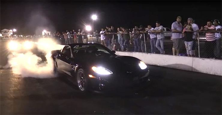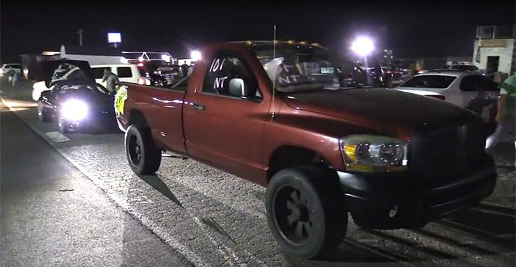 This Dodge Ram has a Cummins diesel engine hiding beneath its hood that shocks the hell out of the Corvette when they rev up and take off down the strip! This Corvette owner probably had no idea what was coming when the Cummins owner hopped out a couple of cars on him and took the win!
