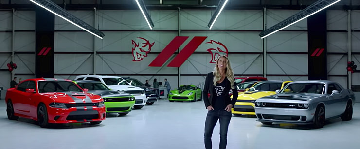 This new commercial – titled Muscle Heaven – starts by showing several cast members from The Fate of the Furious approaching a secure warehouse door and when that door opens, we see an incredible spread of high performance Dodge products with some familiar Dodge brand emblems mounted on the wall.