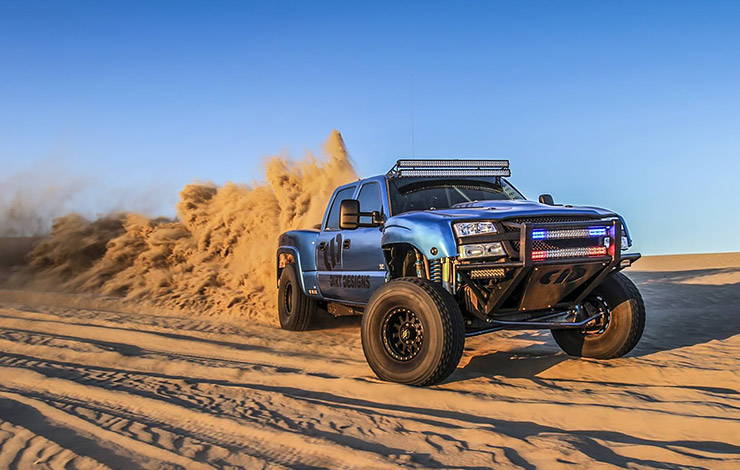 Catching big air off the dunes, you probably wouldn’t expect this truck to be diesel powered. But this 2006 Chevrolet Silverado powered by 6.6L Duramax diesel engine what looked like a mix between a fullsize and a trophy truck has more than 500 hp to the tires.