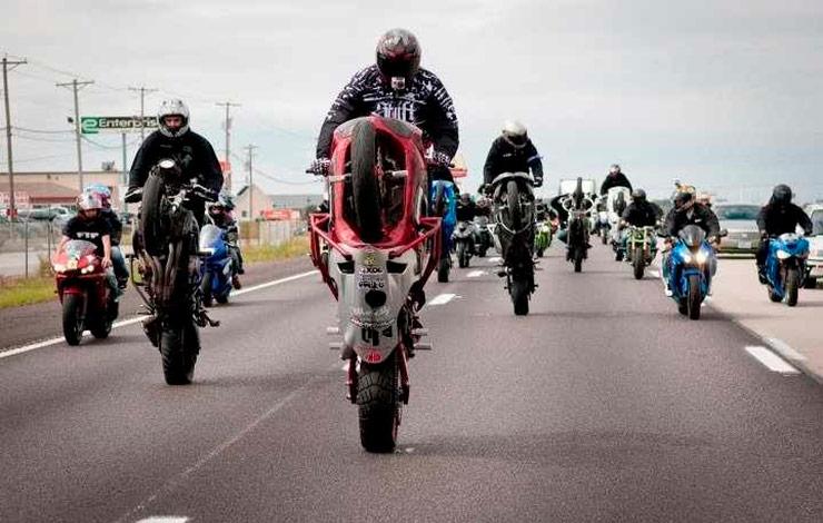 Many of the bikers ride custom built motorcycles specifically for motorcycle stunt riding. They terrorize the streets by performing illegal motorbike stunts and tricks.
