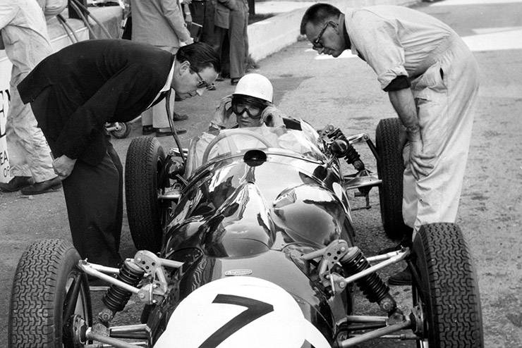 Stirling Moss in Ferguson P99 formula 1 racecar