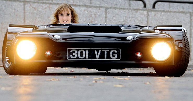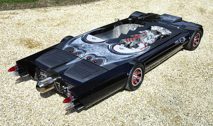 The Flatmobile was created by UK custom car builder Perry Watkins. It just so happens to be a replica of the Batmobile. Keeping with the Batmobile theme, he added a couple fins and 1959 Cadillac tail lamps, along with a cockpit divider and plenty of switches and gizmos, all the while keeping the height to a mere 19 inches.