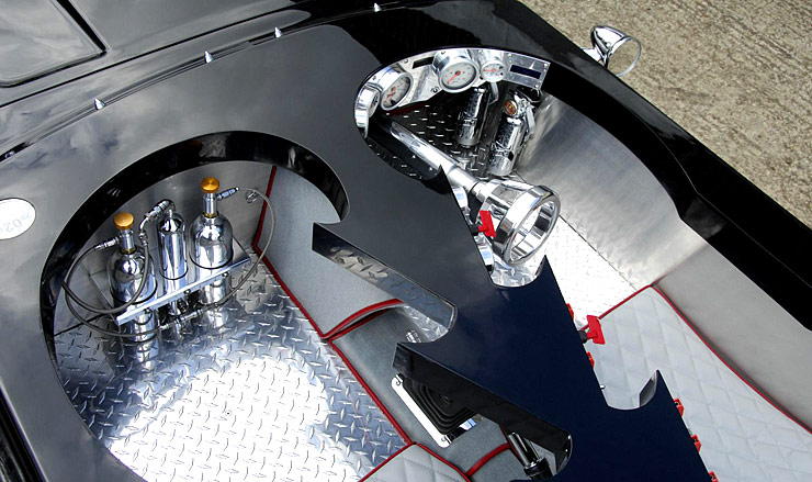 This car has a modern and luxurious interior design; the seats are designed using high quality materials. Watkins designed a billet aluminum steering wheel and column that telescopes 15 inches to aid the driver’s access to the sharply reclined custom-built seat. The steering wheel is among the smallest ever installed in a car, measuring just six inches in diameter.