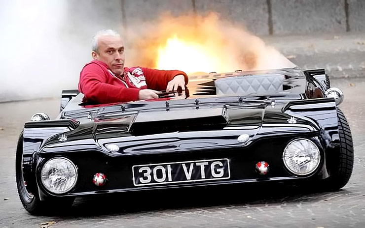 This car is very interesting, you will be surprised to know that the car is powered by a jet engine that shoots 20 foot flames out of the rear, how do you think? –