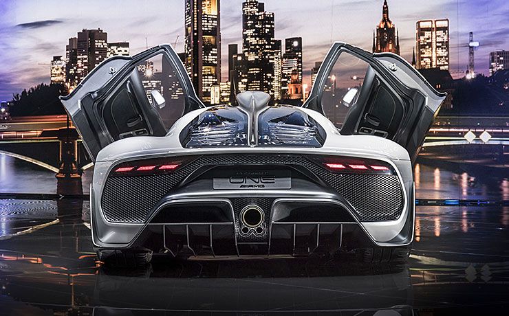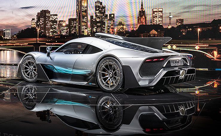 Underneath its body, which was shaped as much by the wind as it was a designer’s pen, lies a powertrain essentially plucked from Mercedes-AMG’s W06 Formula 1 race car. The Project One has upward of 1,000 horsepower from a 1.6-liter turbocharged V-6 mated to a quartet of electric motors.