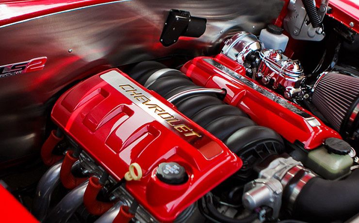 A look into the engine bay revealed custom, polished aluminum valve cover inserts (also made by Fritz!) that sit atop an LS2 from a 2005 vehicle. Inside, the LS2 spins a hotter cam pushing exhaust through shaved heads into a custom-made 3-inch-back exhaust.