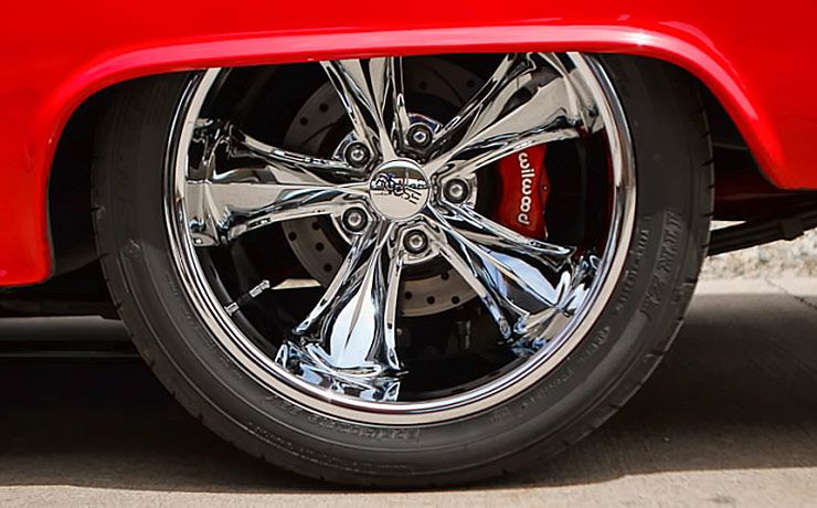 The chrome Foose wheels bring out the best of the red paint, and that stance, ooh that stance. Fritz has achieved the perfect stance for a Bel Air hot rod with handbuilt suspension systems front and rear. Now, that’s a true hot rodder, but unlike some hot-rod-builder stereotypes, Fritz has built one excellent, fully functional and reliable car.