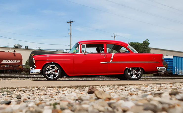 When you mention a ‘55 Bel Air, you picture a red one – that’s what we want, and that’s what Fritz has. A glossy and smooth red exterior is covered by factory chrome, of which Fritz has removed some for a cleaner profile.