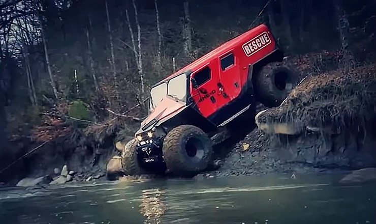 With its pneumatic pillows that are installed on the wheels which will actually make the vehicle traverse effortlessly across such barriers and surfaces. The ground clearance is hard to beat, and best of all, the Rescue can easily be customized to carry fire fighting equipment or other rescue platforms. –