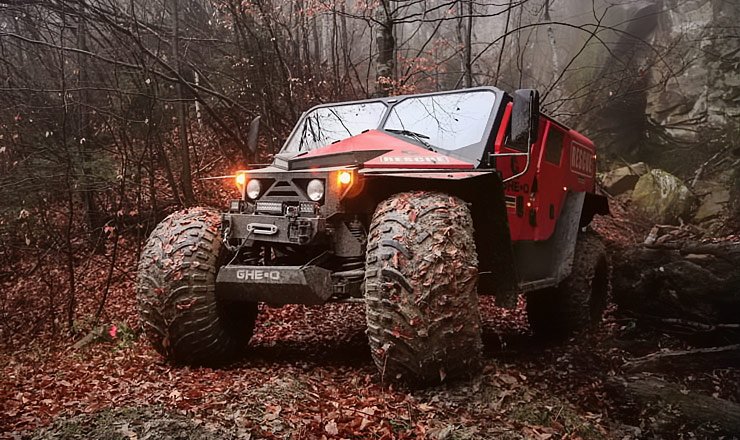 Outfitted with heavy-duty transmission and lockable axles the GHE-O Motors Rescue truck is one of the most capable vehicles on Earth.