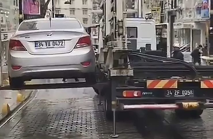 The video, which lasts just 58 seconds, shows a Hyundai illegally parked on the street in Turkey.