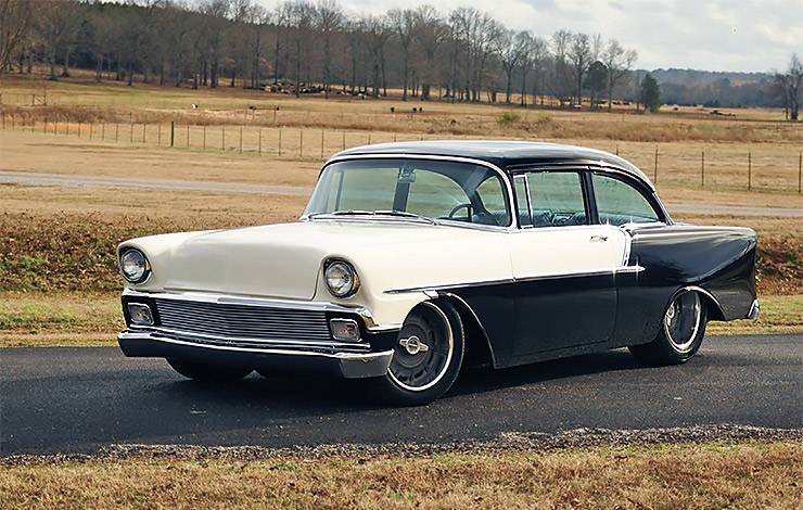 The ’56 was finished just days before the California-to-Texas Goodguys Hall of Fame Road Tour, and Steve and Beth Legens made the 1,800-mile drive without so much as a hiccup or complaint. George had a vision of a modern, no nonsense One-Fifty sedan, and Legens was able to deliver.