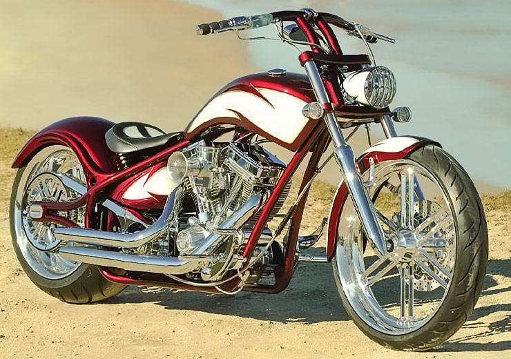 The Carl’s Speed Shop owner, Carl Marrow, is a world-class racer and tuner of Harley-Davidson bikes since the early 1960s. He holds or has held 68 national speed records, including Bonneville, and achieved fame for building “The World’s Fastest Harley.”The famous speed freak Carl Morrow has the essential hallmarks of a great one; an iron will to challenge what others say is ‘good enough,’ the creativity necessary to render a solution, and the attention to detail that puts the rubber to the road – and the records in the books. That’s why he’s been in the business of speed for over 40 years, and it explains how the Bad Dog custom bike has evolved from an idea in bare metal to the sleek street machine you see here.
