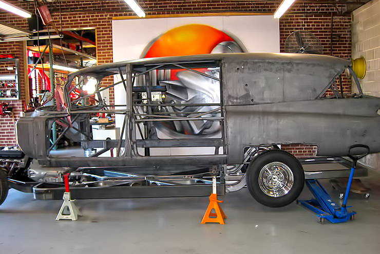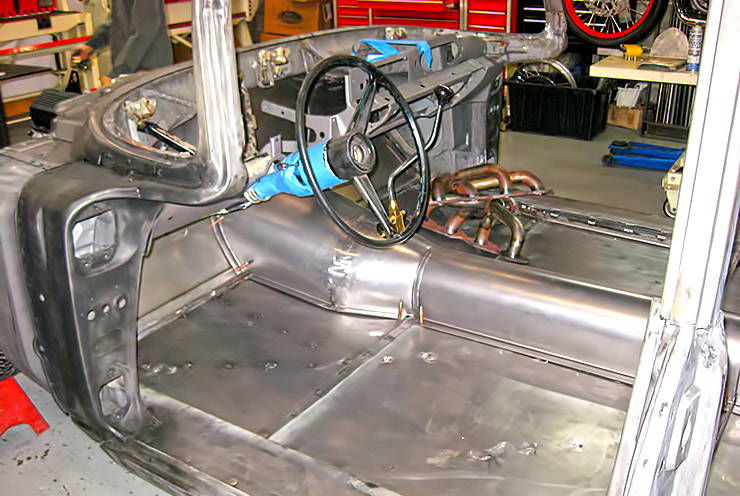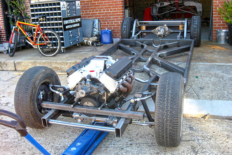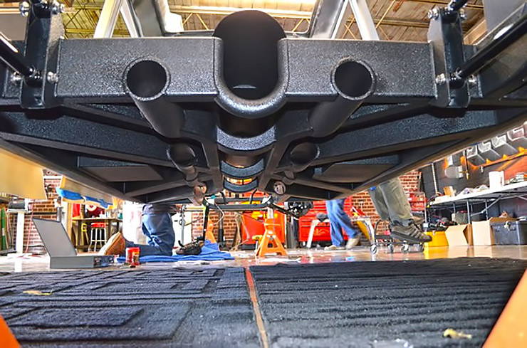 Huge by long boxed custom Art Morrison chassis. Notice the exhaust pipe routing through the frame.