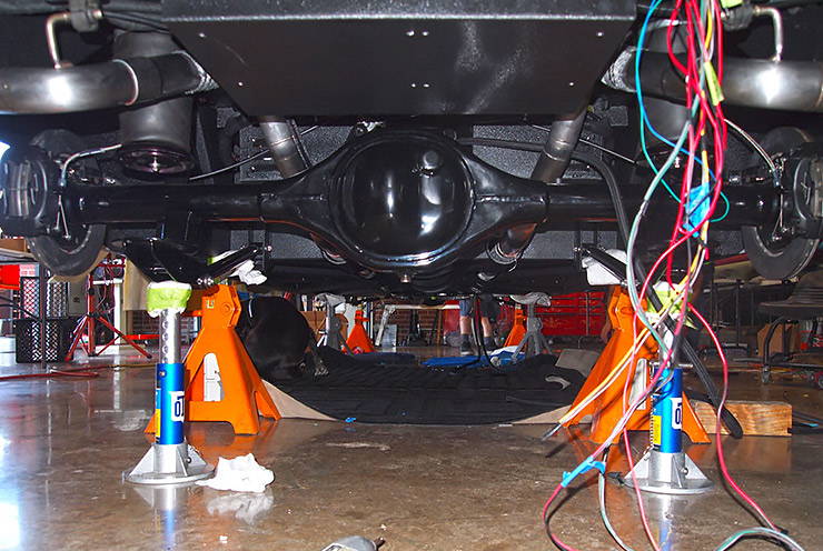A great view of the rear axle and suspension. Wires seem to be EVERYWHERE on this car.
