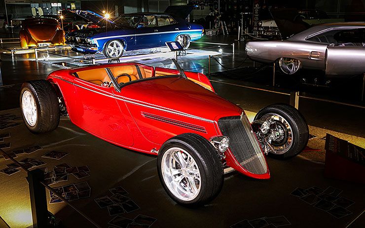 Loosely based on a ’33 Ford Roadster, Mike spent more than six years and 7000 hours in his home garage making this stunning all-steel roadster from. The chassis was plasma cut from 3mm flat plate then welded together to form the flowing chassis.The body panels started as flat sheet steel, which was rolled, beaten and peened into shape – including the door frames and body structure. The dash was hand formed, the seats were fashioned from foam-covered wood and steel. Other than the basic driveline, front axle and Jaguar IRS, Mike has hand fabricated everything else.