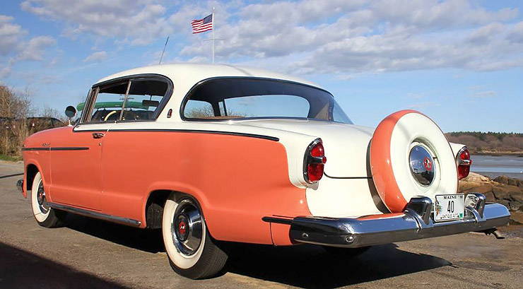 In collector circles these cars came to be known as a “Hash” thanks to their shared components with the Kenosha product. Indeed, the Hudson Ramblers and Metropolitans only difference with their Nash brethren was the nameplate—perhaps the most blatant example of “badge engineering” ever to come down the road. Nevertheless, those who chose a Hudson Hollywood Custom hardtop in 1955 got some pleasing features, particularly on the inside. Included as standard equipment were transparent sun visors, a 16-inch-wide rear seat center armrest, padded dash and an overhead net for carrying oddments.Outside, a “continental” spare tire was standard equipment, freeing up an enormous amount of trunk space and raising hell with gas mileage and aerodynamics. Due to their very low production originally, these cars seldom come up for sale neither in the collector market, nor in magazines like Hemmings, on the internet or at auction.