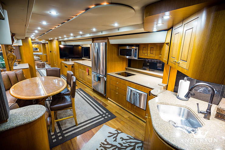 Let’s not ignore the stunning interior decorations that benefit from the world’s finest materials: leather, oak wood and marble. Eventually, traveling makes you hungry, and this is when your personal chef will make use of the full-size residential kitchen, equipped with the appliances and amenities needed to create gourmet dishes. The panoramic windows will add to the charm and unique dining experience, and allow guests to enjoy views of the beautiful outdoors – the flat screen TVs might come in handy if all that sounds boring; it doesn’t, at least to me.Renting the Heat by Anderson Mobile Estates might not be affordable, but it’s one eccentric move that is worth every penny.