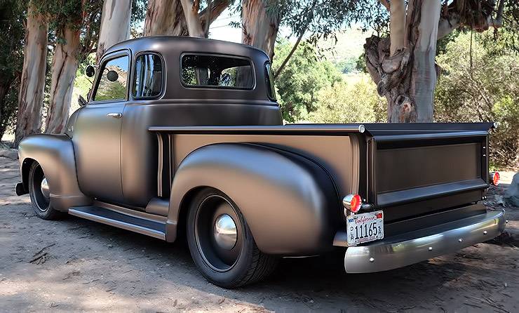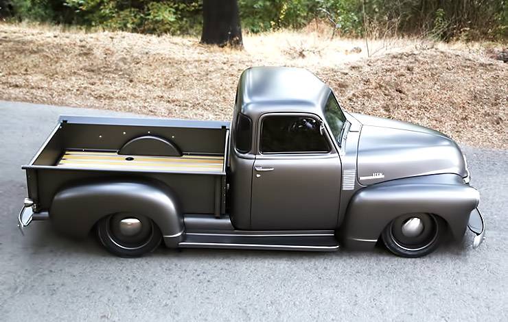 The key to ICON’s creations is the chassis engineering. Jonathan partners with Art Morrison to create a custom chassis for each product line at ICON. They went through a year of testing and refining the chassis on the Thriftmaster test mule before starting out on the first production model. They ended up with beefy 2×5 main rails with an independent tig-welded tubular front and four link rear running Johnny Joints. It’s all sitting on 18-inch billet Circle Racing wheels wrapped in Nitto’s NT555 285/40 in the front and 295/45 in the back. All of that makes this 1950s truck handle like a modern day Corvette.Under the hood is the GM 6.2 LS3 Erod Gas engine, which reaches 430 horsepower and 424 pound-feet of torque. It’s mated with a 5-speed TKO Tremec Manual Transmission. Five-speed Tremec T56 Magnum manual or GM automatic transmission is an option. With all this power the 3800-pound truck can reach 60 mph in less than 5 seconds. The body is an authorized reproduction from Premier Street Rods. They worked hours and hours to clean up all the gaps to make them feel and look more modern. Jonathan even grafted panels from 1947-1953 Thriftmasters, creating his own iconic look.