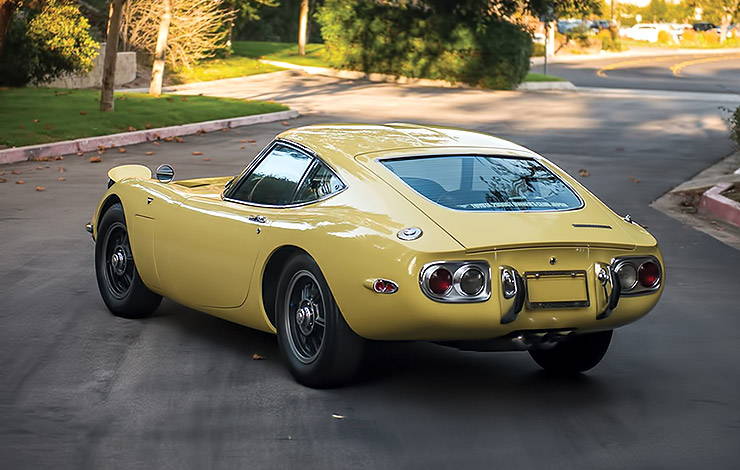 Power came from a 150-hp hemi-headed twin-cam version of Toyota’s rather mundane production 2.0-liter inline six-cylinder engine. Toyota backed this formidable little mill (it made its peak horsepower up at 6,000 rpm with an 8.4:1 compression ratio) with a five-speed manual gearbox of its own design that featured synchromesh engagement on all gears. Weighing in at about 2,500 pounds, the 2000 GT was good for 15.9-second quarter runs and 0-60 mph in 10 seconds – at least that’s what Toyota stated. Though the speedometer ran all the way up to 160 mph, top speed was in the 120-130-mph range. Between 1966 and 1968, 351 2000 GTs were built; reports indicate that between 50 and 65 of these were imported to the U.S. The American public got its first look at the 2000 GT at the 1967 New York Auto Show; and though one would have expected it to establish quite a following, it never caught on. This is most likely because of its higher price (nearly $7,000) in comparison to what was available from Jaguar, Porsche and MG. Even the appearance of a 2000 GT convertible in the James Bond flick, “You Only Live Twice,” did little to encourage sales in the States.Where it did distinguish itself as a GT of the highest order was in competition. In 200-hp tune, Toyota’s two-seat fastback coupe broke numerous international speed and endurance records. In 1968, Carroll Shelby backed a two-driver 2000 GT team in the SCCA’s C Production class, and racked up several wins and podium finishes in its single season as a serious competition effort. Though few had an interest in this short-lived sports car when it was new, today it is considered to be one of the few collectible Japanese cars of this period. As one of these it is the most highly sought after, and is a real feather in the collector’s cap. Just a little reminiscent of a certain American automobile named the Superbird, now, isn’t it?