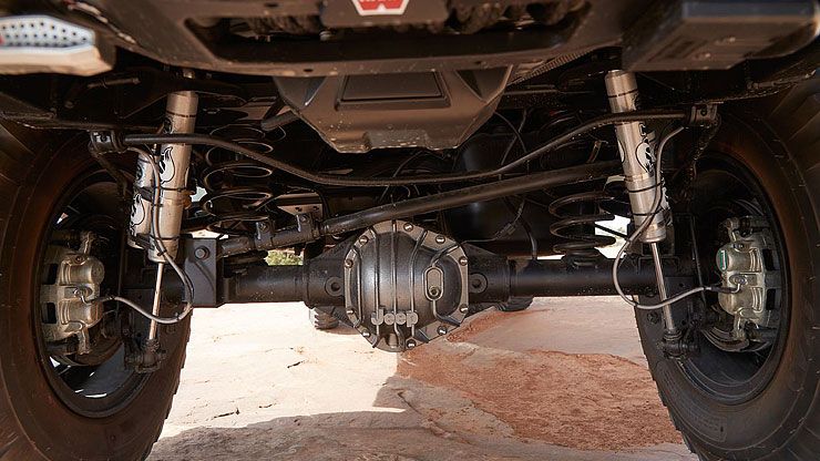 The Crew Chief rolls on 40-inch NDT military tires wrapped around 20-inch beadlock wheels. Supporting the additional weight are a pair of JPP Dana 60 axles fitted with Eaton ELockers, 5.38:1 gears and Warn hubs.