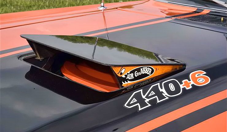 The 1970 440 continued to be capable of 390 horsepower when equipped with the so-called Air Grabber induction system. That interesting system provided a solid connection between the hood scoops and engine once the hood was closed. The sides of the pop-up Air Grabber door were eye-catching with evil-looking shark’s teeth etched on the sides.