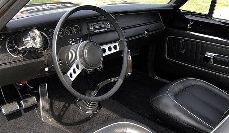 The car also carries the Super Track Pack which included front disc brakes, heavy duty cooling package, special cooling fan, and the Dana rear end. The interior is done in black vinyl and sports bucket seats.