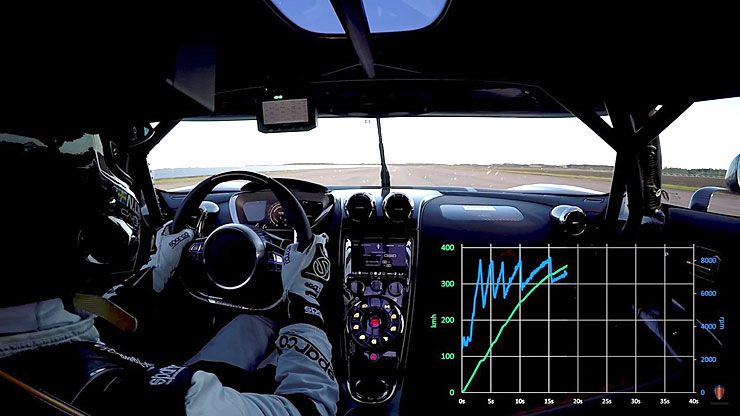 The Agera RS took 26.88 seconds to accelerate to 400 kph over a distance of 1,958 meters (1.21 miles). From there, the Agera RS’s carbon ceramic discs and bespoke calipers – made by Koenigsegg – brought the car to a controlled stop, the journey from 400 km/h taking just 9.56 seconds over a distance of 483 meters (0.3 miles). The total distance used for the 0-to-400-to-0 kph run was 2,441 meters (1.51 miles).
