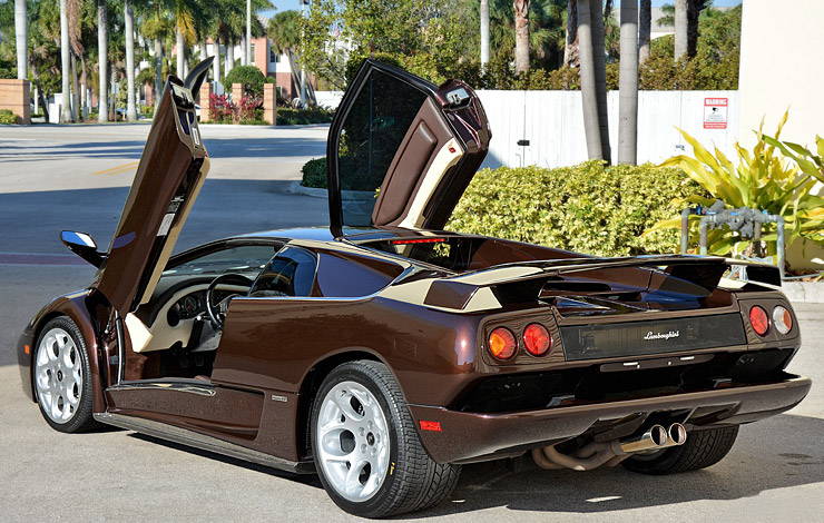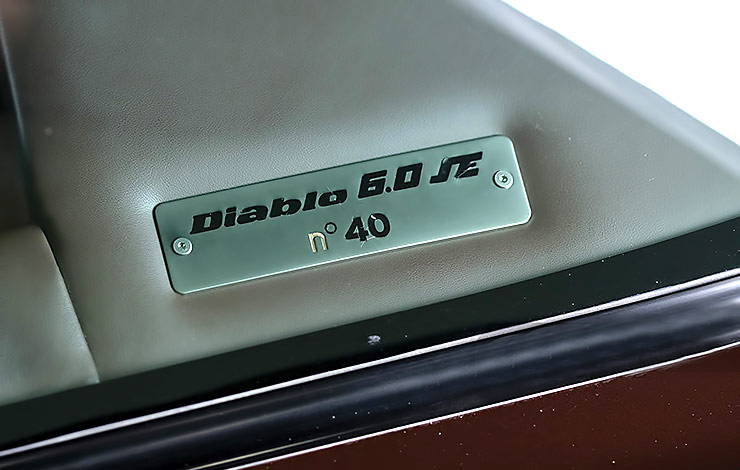 Only forty cars were built — making them the rarest of the Diablos — split evenly between two colors. Oro Elios, a gold metallic, was meant to symbolize a sunrise, while a Marrone Eklipsis, a brown metallic, was inspired by the sunset. Considering this was the final car it would only be fitting to be finished in the sunset color of Marrone Eklipsis. Inside the interior is dressed in a lovely espresso brown leather.