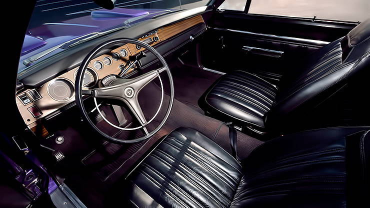 The car’s interior is topical for a sport car. Furthermore the model was also available with a Hemi engine as well as with four-speed manual transmission and upgraded tires. Another distinctive characteristic was the twin loop front bumper that resembles the bubble bee’s wings.